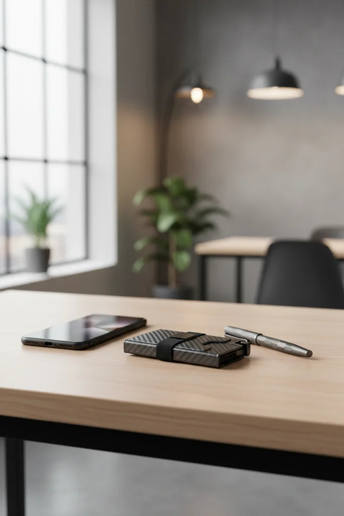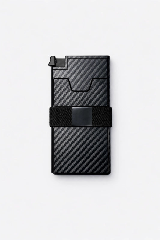 Eliminate the bulk of traditional wallets. Our carbon fiber design ensures your essentials remain organized and instantly accessible, maintaining a sleek profile without compromise. Experience refined efficiency.